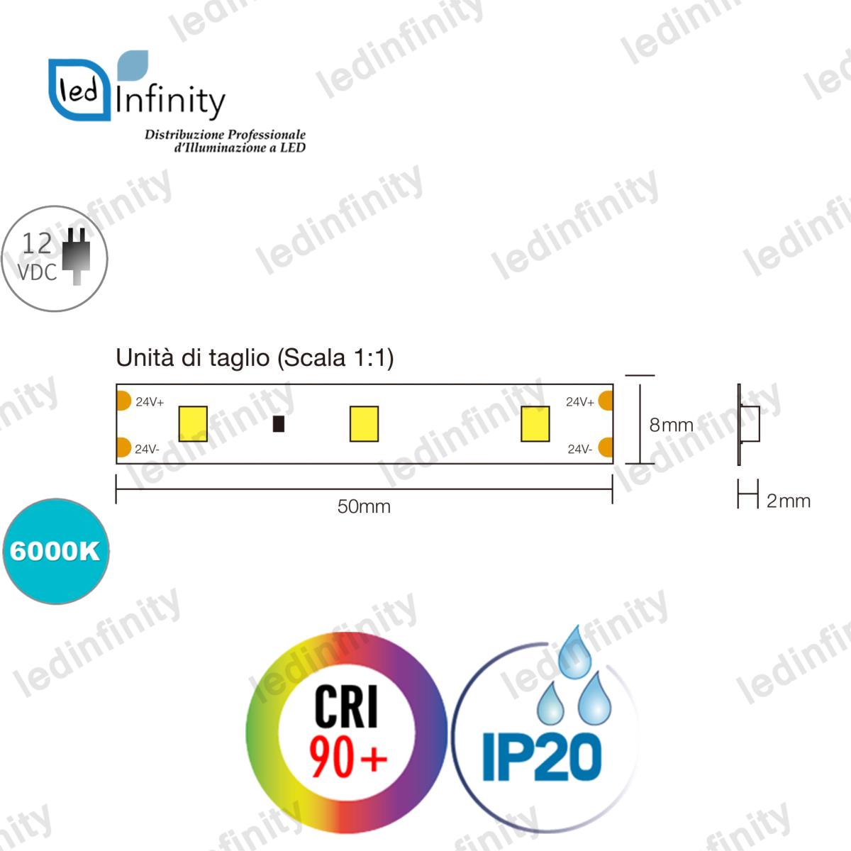 STRISCIA LED 12V SMD 2835 300 LED IP20 24W 2100LM CRI90